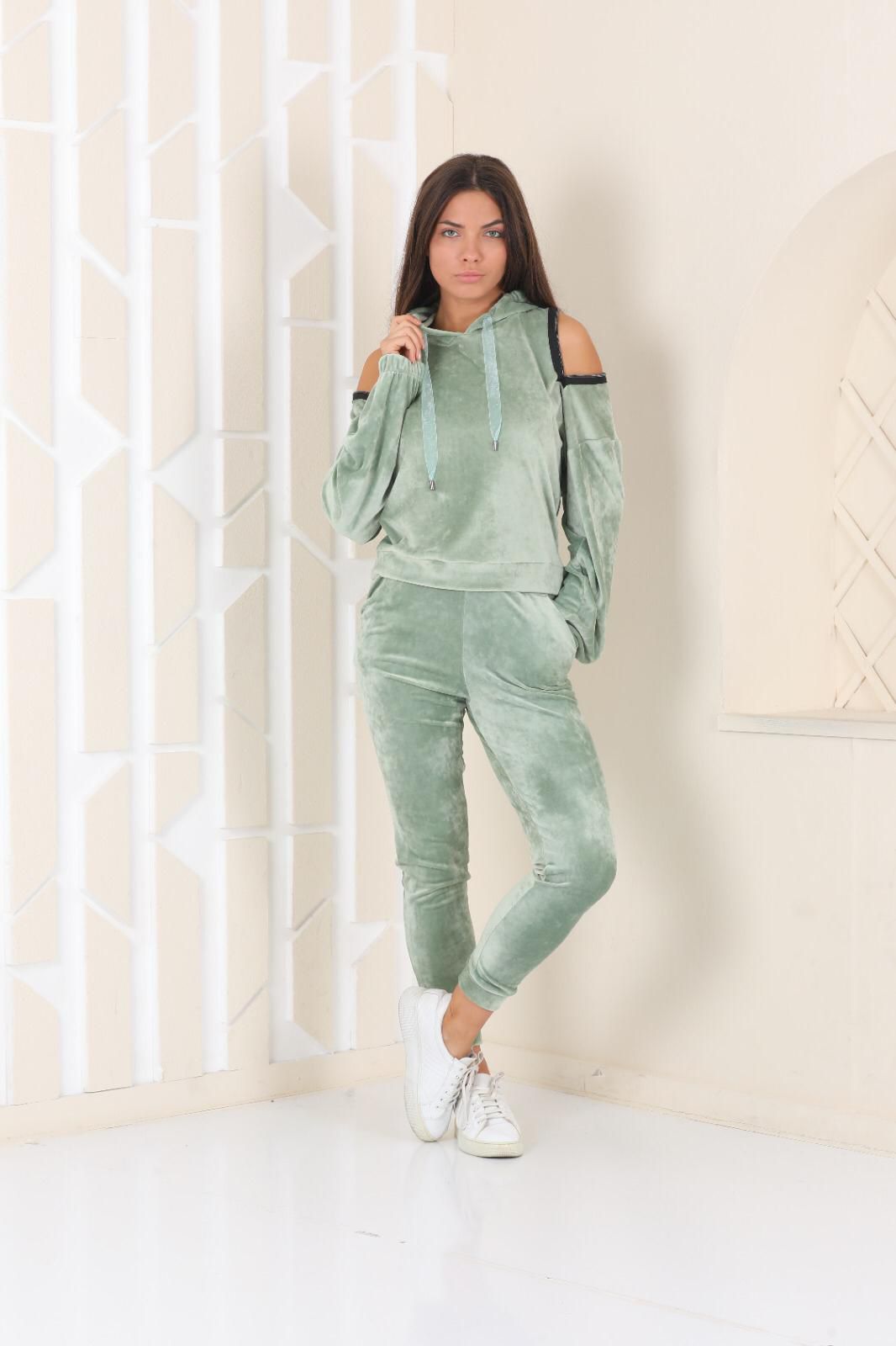 Compleu Rabia-Set de trening din catifea-cu glugă și umeri decupați