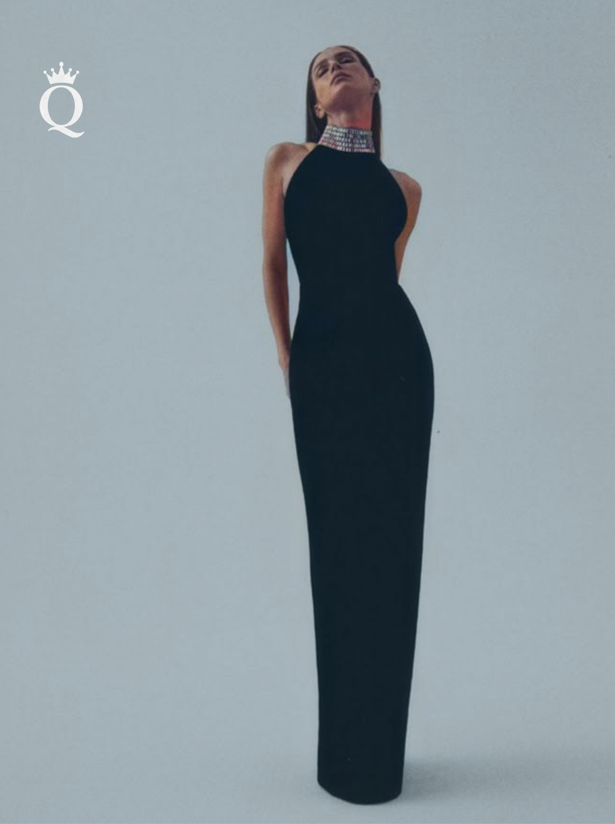 Rochie Juvial-Rochie lungă mulată-din plasă neagră-acoperită cu strasuri (pietre strălucitoare)