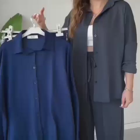 Set Camasă Oversize și Pantaloni Lejeri - Eleganță Relaxată
