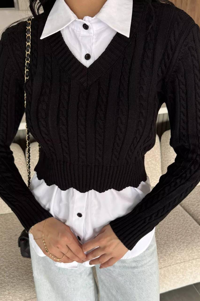 Adoptă un look sofisticat și modern fără efort cu acest set hibrid, care combină eleganța unei cămăși clasice cu confortul unui pulover tricotat. Este piesa ideală pentru o ținută de tip "smart-casual" sau pentru un stil office relaxat.